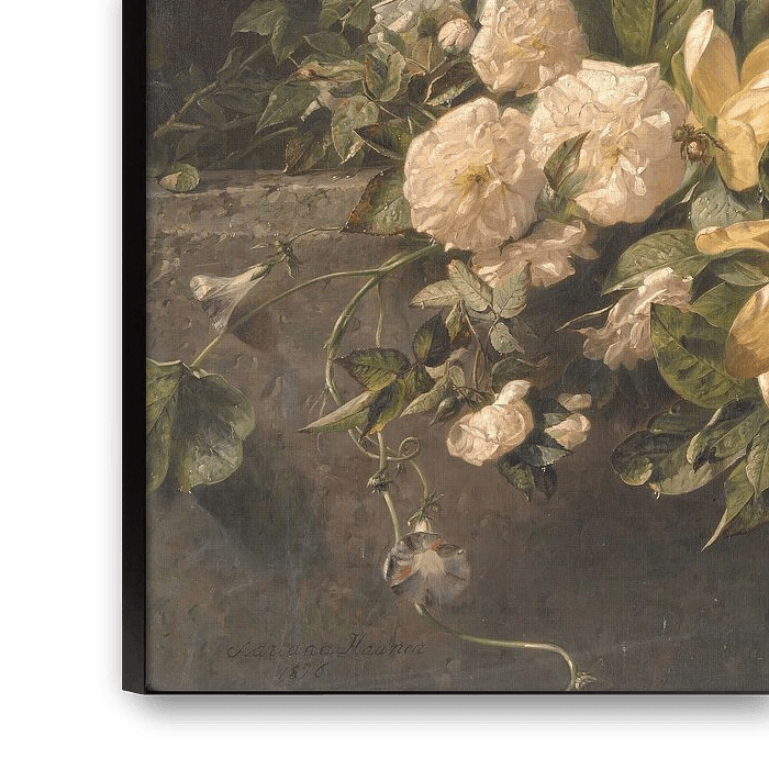 Artichokes, roses and magnolias, Adriana Johanna Haanen (1876)