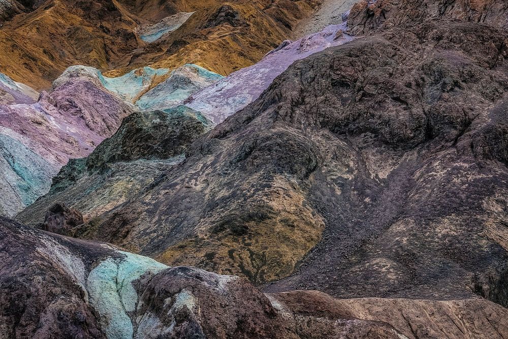 Special place in Death Valley where the colors really become visible very early in the morning or late in the evening. It is amazingly beautiful how the minerals bring out the colors.