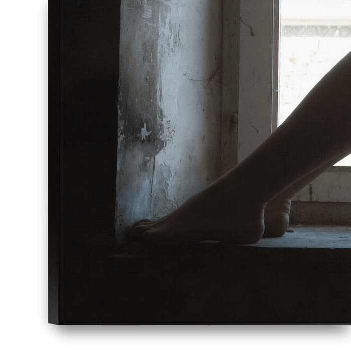 Buy the photo Artistic nude woman in seated pose by the window by Arjan Groot on canvas, ArtFrame, poster and wallpaper, printed on demand in high quality.