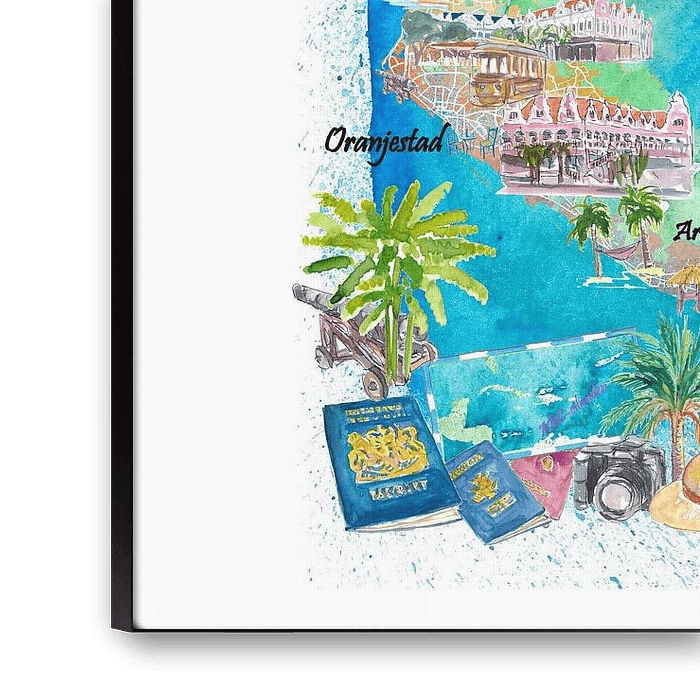 Buy this painting Aruba Bonaire Curacao Illustrated Island Travel Map with Roads by Markus Bleichner as a reproduction on canvas, ArtFrame, poster and wallpaper, printed on demand in high quality.