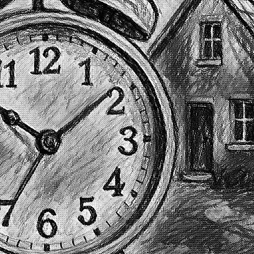Buy this illustration As the clock ticks at home, it ticks nowhere. by Jose Lok on canvas, ArtFrame, poster and wallpaper, printed on demand in high quality.