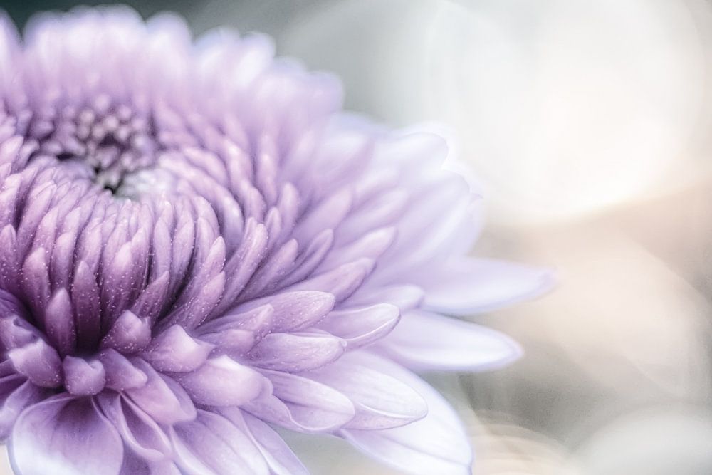 Photograph of a delicate purple-coloured aster blossom in fairytale light. The image is rich in detail and soft at the same time, which further emphasises the fairytale aura.