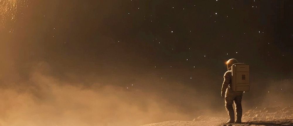 Immerse yourself in the infinite vastness of the universe, where a brave astronaut explores the mysterious landscape of an alien planet. The golden rays of the sun mingle with the dusty terrain, while majestic celestial bodies sit enthroned in the background. This mesmerising artwork fits perfectly in the living room to inspire conversations about dreams and adventure.