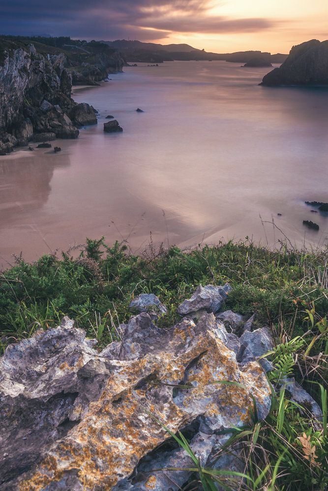 Sunset at Playa Almenada in northern Spain in the province of Asturias.