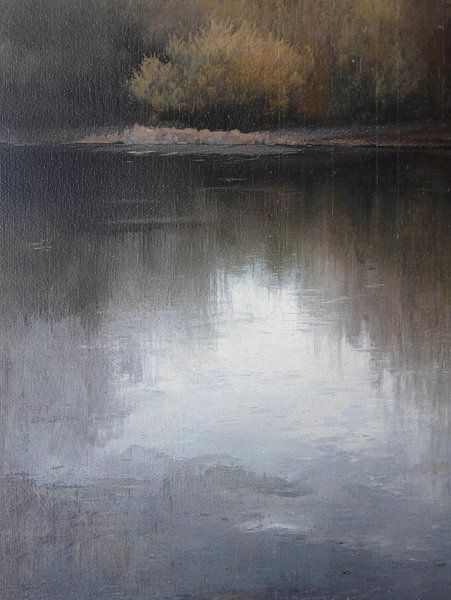 Buy this landscape artwork Atmospheric Golden Autumn Forest Reflection Oil Painting by Artistic on canvas, ArtFrame, poster and wallpaper, printed on demand in high quality.