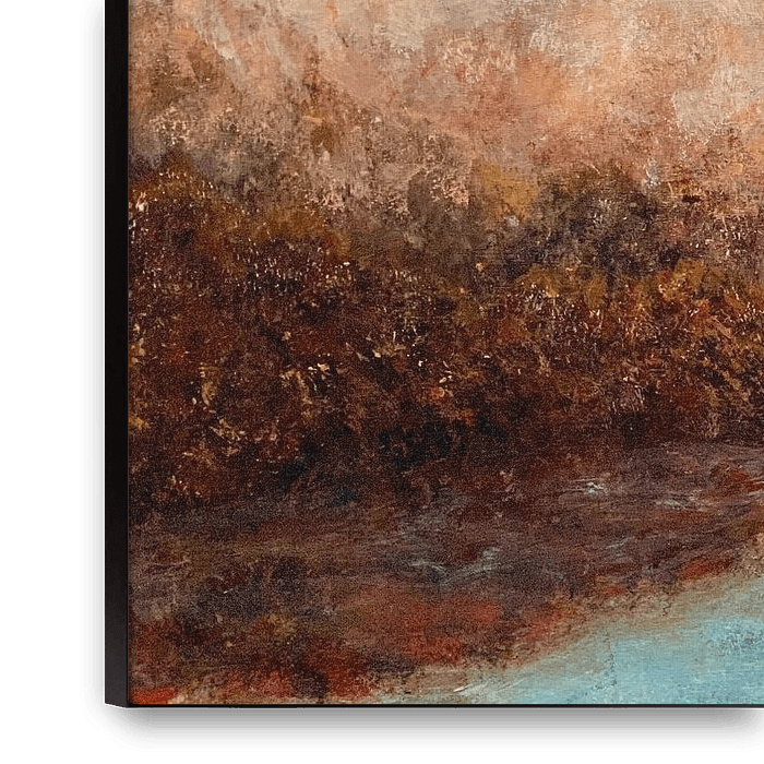 A very nice abstract landscape rendered in this painting. The developed technique enhances this beautiful portrait. A beautiful combination of colors sublimate with brio this timeless and contemporary painting. A work of art made with oil on canvas.