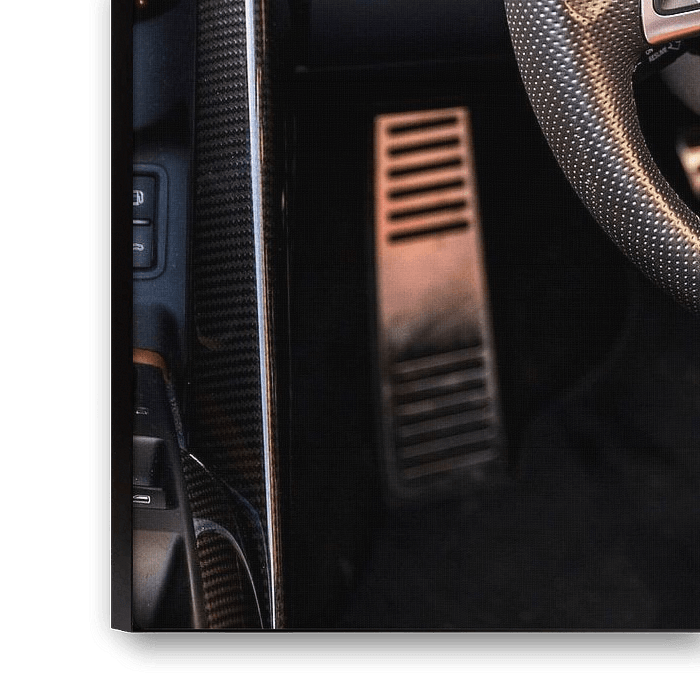 Audi R8 V10 Plus sports car dashboard. The Audi R8 is a mid-engine, two-seater sports car manufactured and marketed by the German automobile manufacturer Audi. The Audi R8 V10 Plus is a high-performance variant of the Audi R8 sports car.