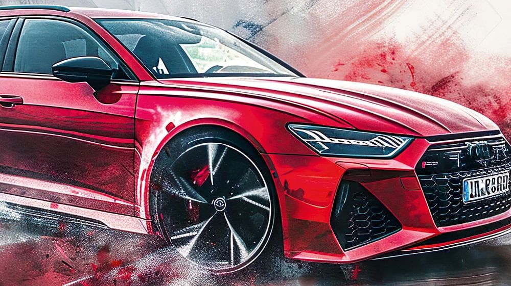 In a cinematic view, the Audi RS6 shines in a sketchy style, enveloped in an intense fiery red colour that catches the eye. The camera follows the flowing lines of the car as the sketchy surroundings slowly come to life. The wind swirls around the car as the sketch lines dynamically fade and reappear, creating a sense of speed and motion. Close-up shots reveal the powerful contours of the bodywork and the sharp details of the headlights, while the red colour contrasts with the surroundings. The Audi RS6 becomes a symbol of passion and power, captured in a cinematic experience that mesmerises the viewer.