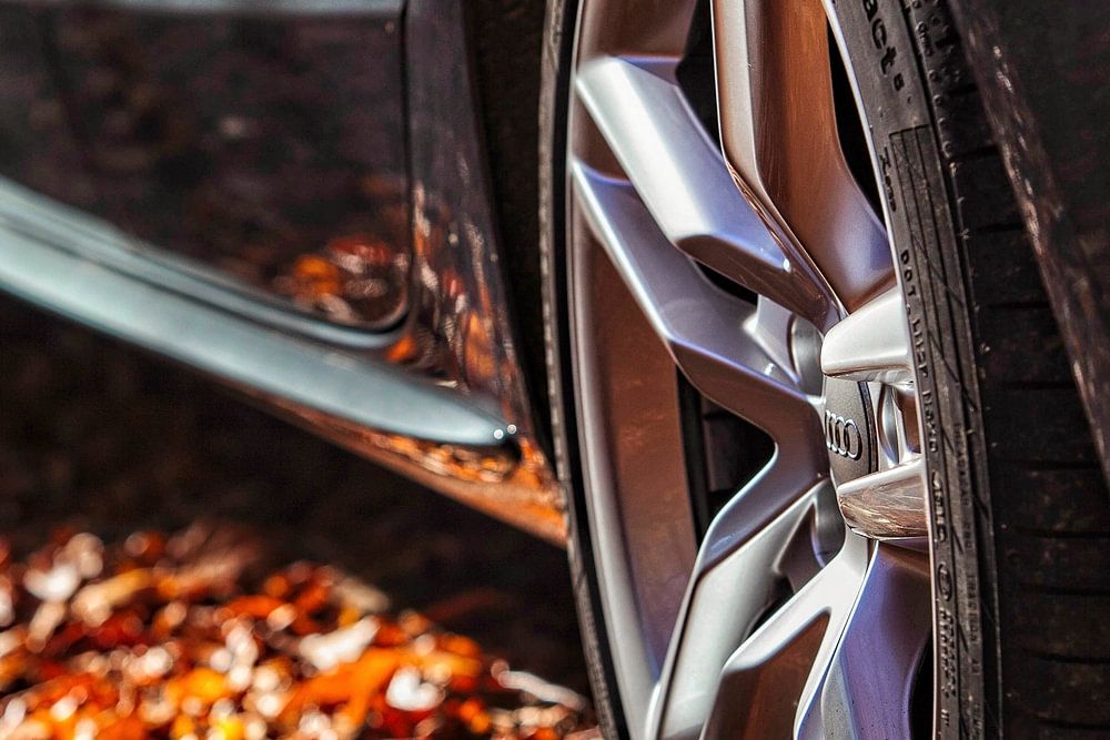 18 inch rim from the Audi A5 model year 2017 with autumn reflections in the sheet metal.
