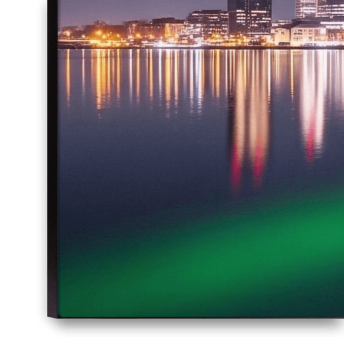 Buy this digital art artwork Aurora Over the City by Syapaat syapaat as a reproduction on canvas, ArtFrame, poster and wallpaper, printed on demand in high quality.