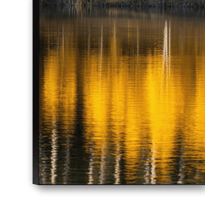 Autumn aspen grove reflection in a pond lit with afternoon light.
