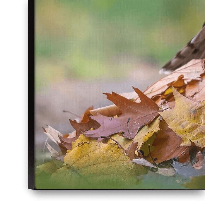 If you like birds of prey then you will no doubt like or find this photo of the hawk atop a pallet of coloured leaves special.