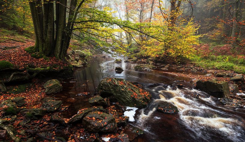 Buy this landscape artwork Autumn Harmony: An Enchanted Forest Brook by Hevonax Photography on canvas, ArtFrame, poster and wallpaper, printed on demand in high quality.