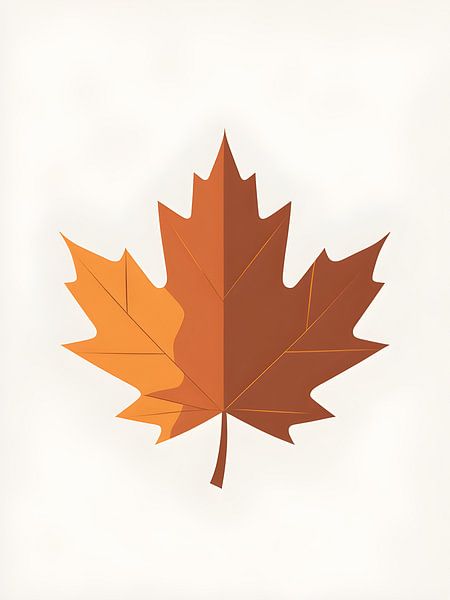 A beautifully minimalist illustration of a classic maple leaf in warm autumn colors ranging from bright orange to burnt sienna and golden amber. The geometric treatment of the leaf's natural form, with clean lines defining each lobe and subtle vein details, creates a perfect balance between natural beauty and modern design. Set against…