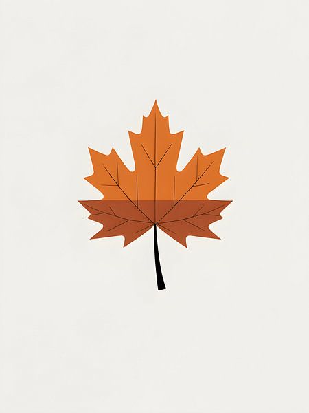 A beautifully minimalist illustration of a classic maple leaf in warm autumn colors ranging from bright orange to burnt sienna and golden amber. The geometric treatment of the leaf's natural form, with clean lines defining each lobe and subtle vein details, creates a perfect balance between natural beauty and modern design. Set against…
