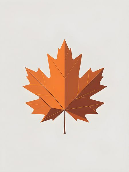 A beautifully minimalist illustration of a classic maple leaf in warm autumn colors ranging from bright orange to burnt sienna and golden amber. The geometric treatment of the leaf's natural form, with clean lines defining each lobe and subtle vein details, creates a perfect balance between natural beauty and modern design. Set against…