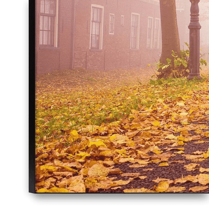 Dense fog pulled over a park and created a wonderful atmosphere with the colors of autumn. This fog is laid during the autumn with the beautiful fall colors in Edam, Noord-Holland, Netherlands.