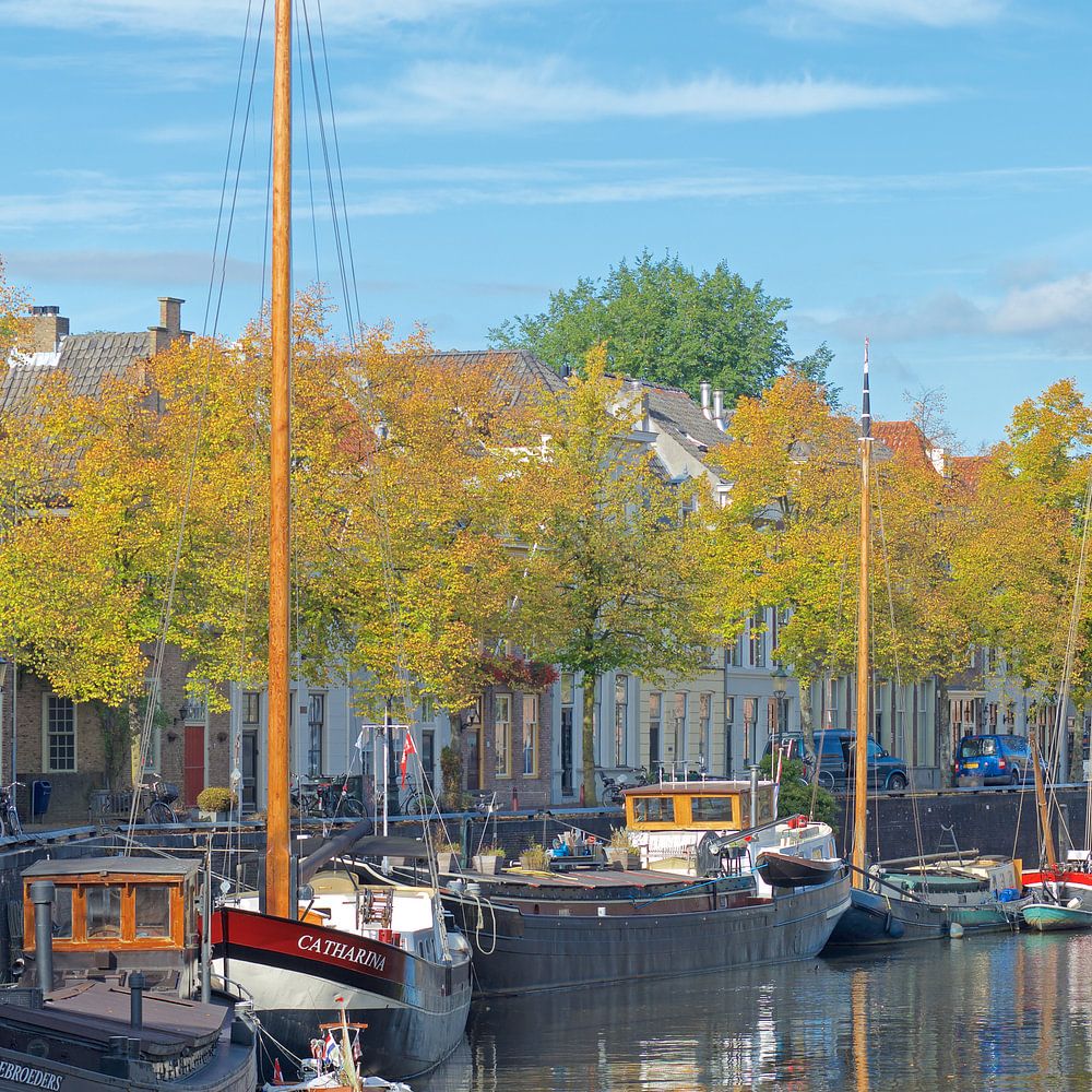 In early October the trees start to colour in the city centre. The Brede Haven with its old facades and houseboats is a beautiful location to capture the beginning of autumn beauty.