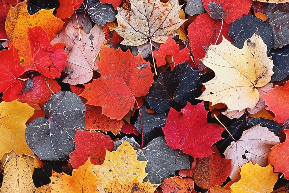 Immerse yourself in the warm colours of autumn with this beautiful photo of coloured leaves on the ground. Perfect for a cold winter day to add an atmospheric touch to your home.
