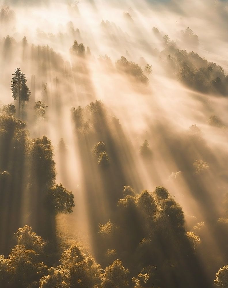 Buy this landscape artwork Autumn forest at sunrise by fernlichtsicht on canvas, ArtFrame, poster and wallpaper, printed on demand in high quality.