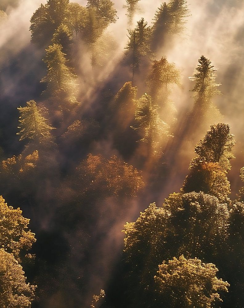 Buy this landscape artwork Autumn forest at sunrise by fernlichtsicht on canvas, ArtFrame, poster and wallpaper, printed on demand in high quality.