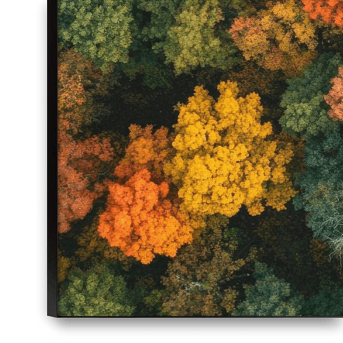 A vibrant play of colours unfolds between the majestic treetops. Warm shades of orange and gold dance with the lush green, while nature puts on her most magnificent robes. This heavenly backdrop invites you to experience the tranquillity of autumn and enjoy the gentle play of light between the leaves.