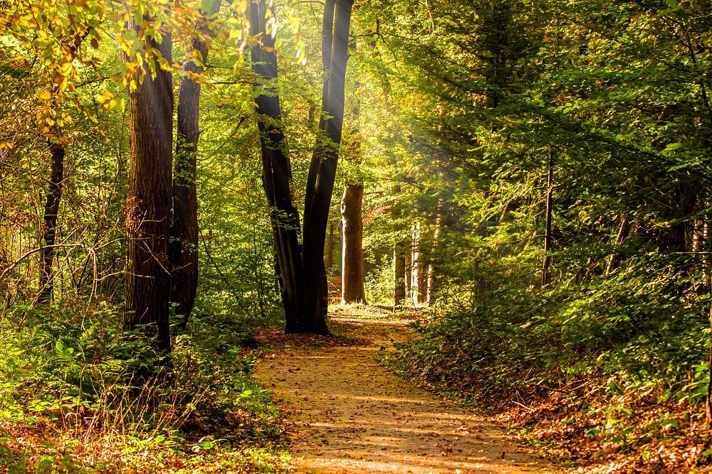 Buy the photo Autumn forest path with sunbeams. by Brian Morgan on canvas, ArtFrame, poster and wallpaper, printed on demand in high quality.