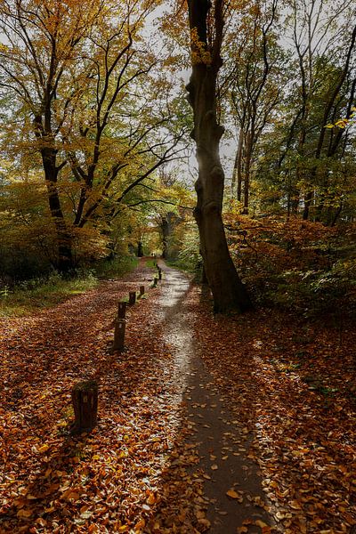 Autumn forest path by Monique Hutten
