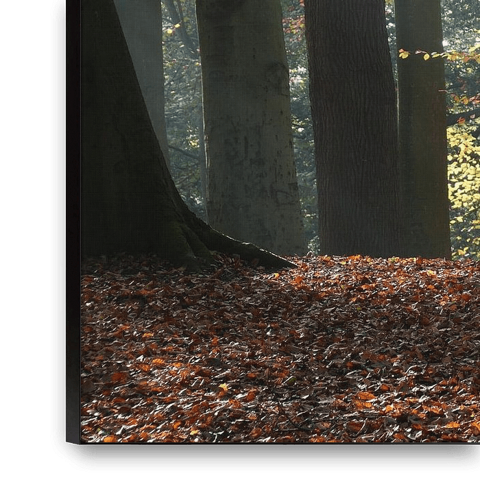 One beautiful sunny day in autumn I was taking a walk in the woods. I looked aside and suddenly saw this image. Beautiful how the light falls through the trees and gives the autumn leaves even more colour. I really enjoyed this image for a while before I captured it with my camera. For the real autumn feeling hang it on your wall.