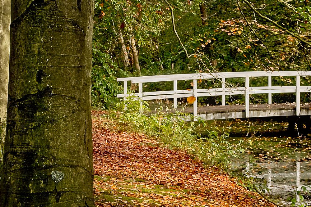 Autumn forest with bridge by Han van der Staaij