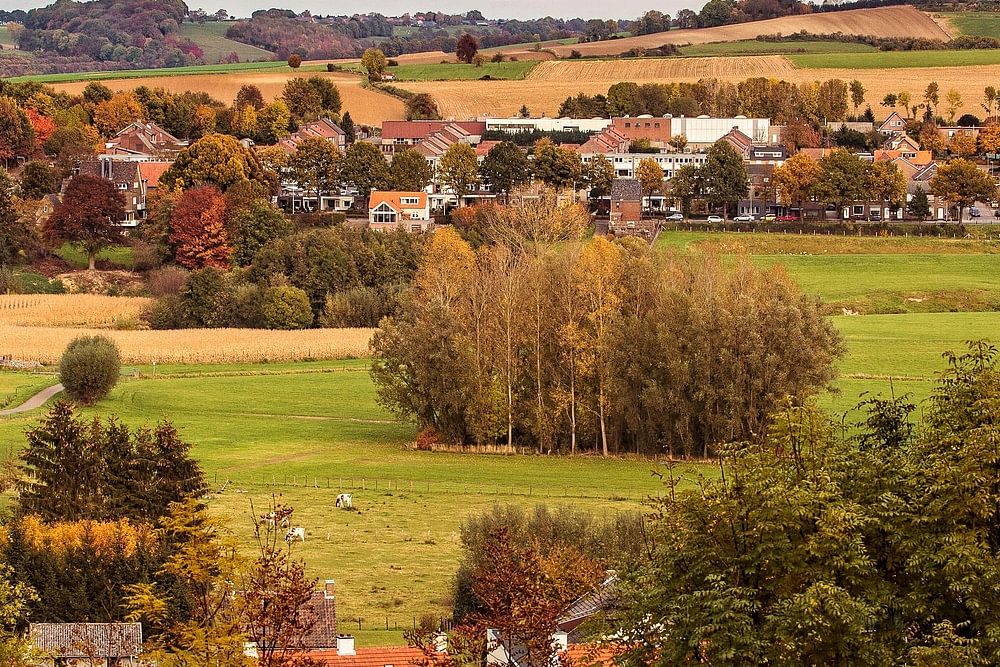 View of the South Limburg village of Wijlre and the Ransdalerveld behind it in autumn from the Berghöf and the hamlet of Stokhem.