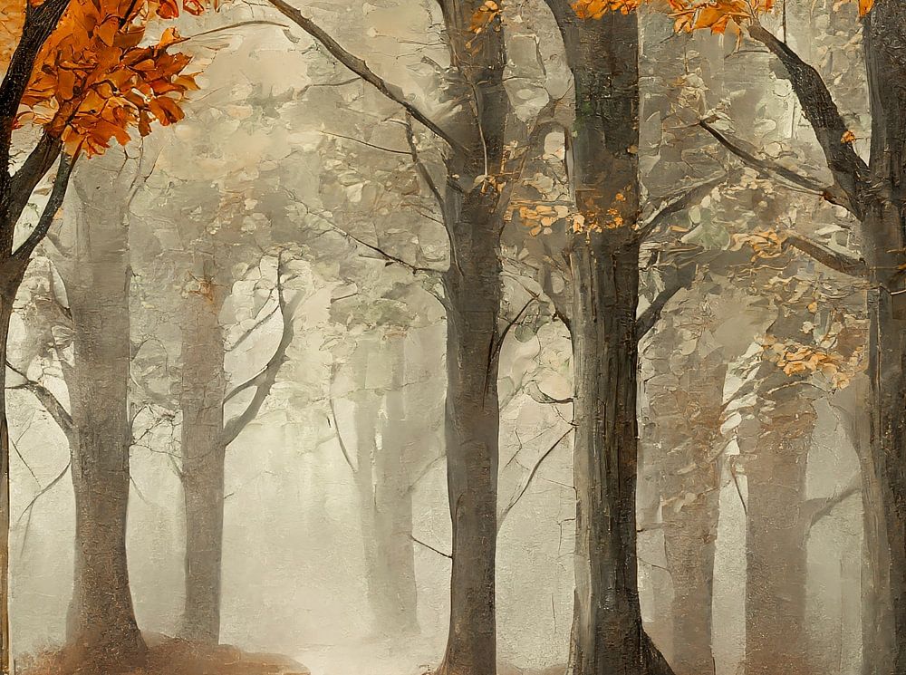 Autumn in an oak forest is beautiful! The leaves change colour and slowly fall down, creating a carpet of warm hues on the ground. Oak forests are known to produce a rich mix of reds, browns and golds in autumn. It is an enchanting spectacle of nature. This is reinforced by the sun's rays and morning mist.