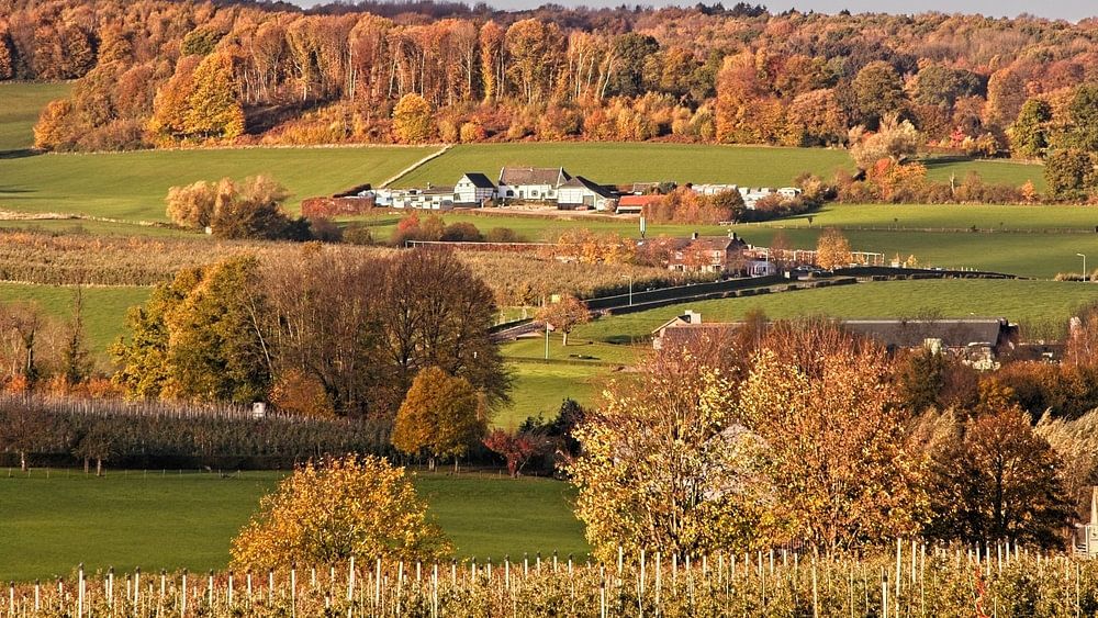 Autumn colors in the South Limburg landscape between Vaals and the Belgian border in the hamlet of Wolfhaag / Raren (Netherlands).