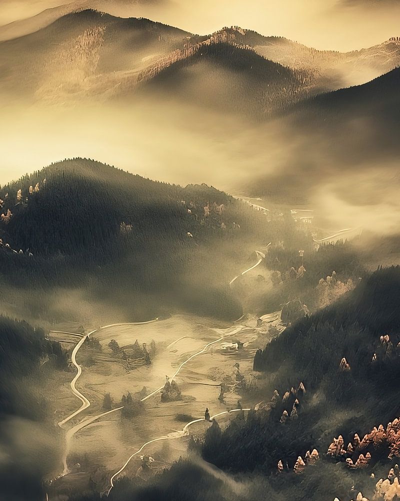 Buy this landscape artwork Autumn in the mountains by fernlichtsicht on canvas, ArtFrame, poster and wallpaper, printed on demand in high quality.