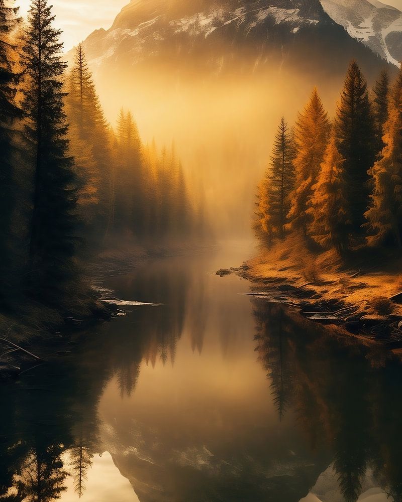 Buy this landscape artwork Autumn in the mountains by fernlichtsicht on canvas, ArtFrame, poster and wallpaper, printed on demand in high quality.