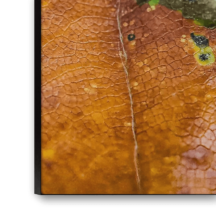 This image is a detail shot of the autumn leaf. The leaf decays causing different colours to appear. It produces an almost abstract image.