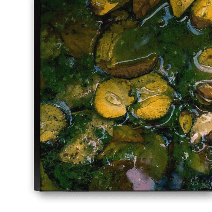 Buy the photo Autumn leaves floating on water 6 by Reinder Tasma on canvas, ArtFrame, poster and wallpaper, printed on demand in high quality.