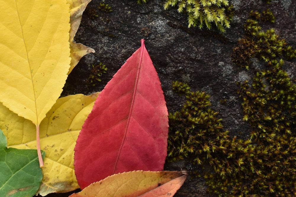 Autumn leaves on a rock in autumn, Sainte-Apolline, Quebec, Canada