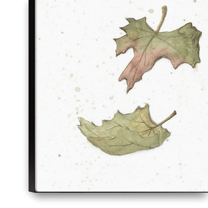 This watercolour shows leaves falling in beautiful autumnal colour gradients, light splashes of colour in the background underline the movement and lightness of the picture