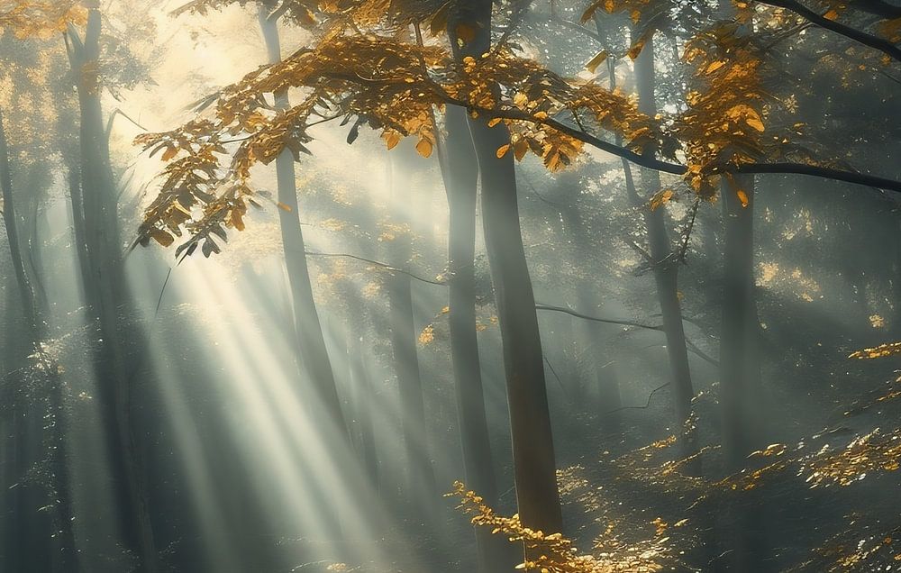 Buy this landscape artwork Autumn morning in golden light by fernlichtsicht on canvas, ArtFrame, poster and wallpaper, printed on demand in high quality.