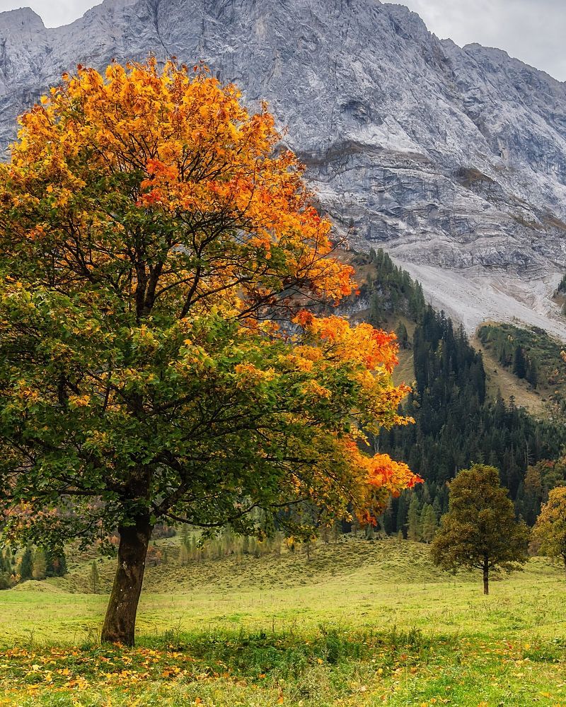 Buy the photo Autumn on the great Ahornboden by Steffen Peters on canvas, ArtFrame, poster and wallpaper, printed on demand in high quality.