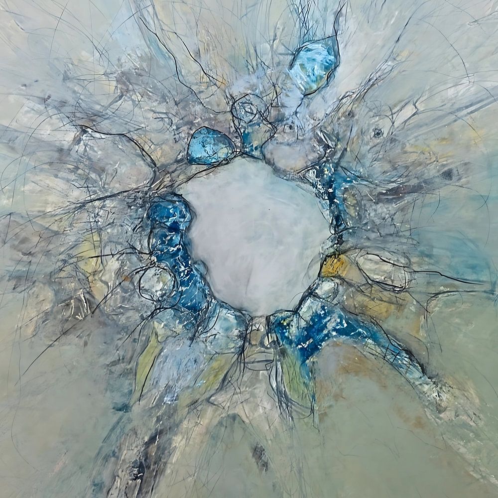 A period when leaves are falling and the world changes colour. Traces of blue sky and the warm sun can still be seen in this painting. As is the speed at which the seasons alternate and the glimpse of winter.