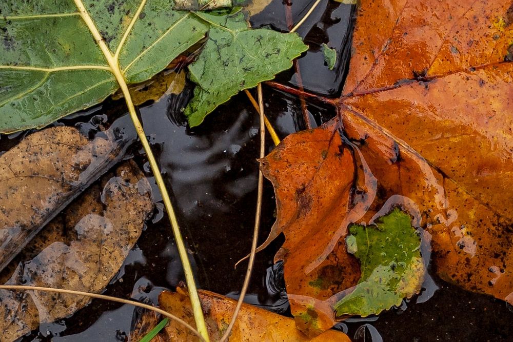 In this photograph, the essence of autumn comes alive as coloured leaves dance gracefully on the surface of a calm stream. The vibrant hues of orange, green and gold reflect the enchantment of the season, capturing nature's last burst of beauty before hibernation sets in. The composition is a symphony of colours, with leaves of different shapes and sizes flowing harmoniously together. Each leaf tells its own story, a testament to the tree it once graced and the life cycle it started. The water, like a polished mirror, reflects the kaleidoscope of colours, enhancing their appeal and giving the scene a sense of serenity. The play of light and shadow adds depth and dimension to the picture. The warm, soft sunlight filters through the foliage and casts a soft glow on the floating leaves, illuminating their intricate details. The mottled reflections shimmer subtly on the surface of the water, creating an enchanting pattern that adds an ethereal touch to the composition. The image exudes calm and contemplation, inviting the viewer to immerse themselves in the beauty of the moment. It captures the fleeting nature of autumn, a reminder of the fleeting beauty that graces our lives, urging us to appreciate the present and embrace the ever-changing tapestry of the world around us. This picture serves as a visual poem, a gentle reminder that beauty can be found in the simplest of moments. It invites us to pause for a moment, breathe in the crisp autumn air and appreciate the profound beauty hidden in the delicate dance of nature's colours.