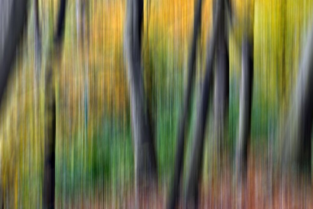 Buy this abstract artwork Autumnal, dreamy beech forest - dream sequence by Silva Wischeropp on canvas, ArtFrame, poster and wallpaper, printed on demand in high quality.
