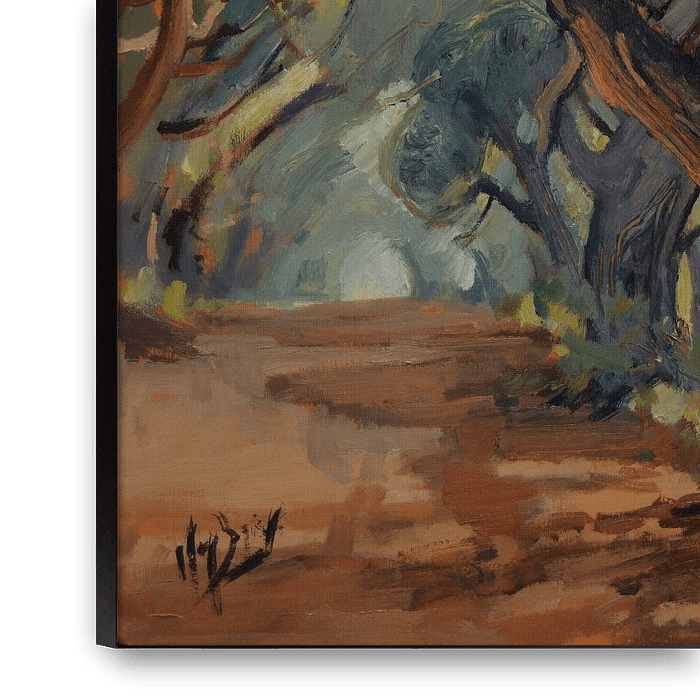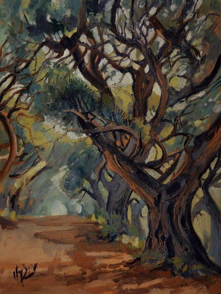 A forest with a wide sandy path lies before me. Old deciduous trees stand quietly opposite a plot of Scots pine. Simply a beautiful forest.
