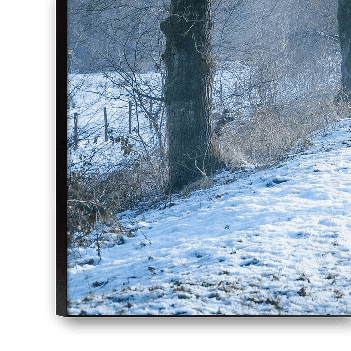 The photo shows a soothing scene of an avenue of trees in the snow, located near the Baardwijkse Overlaat in Waalwijk. The trees are lined up along the road, their branches covered in a layer of snow. The surroundings are coated in white, emphasising the peace and quiet of the area. The trees stand in beautiful contrast to the white landscape and offer a nice view.
