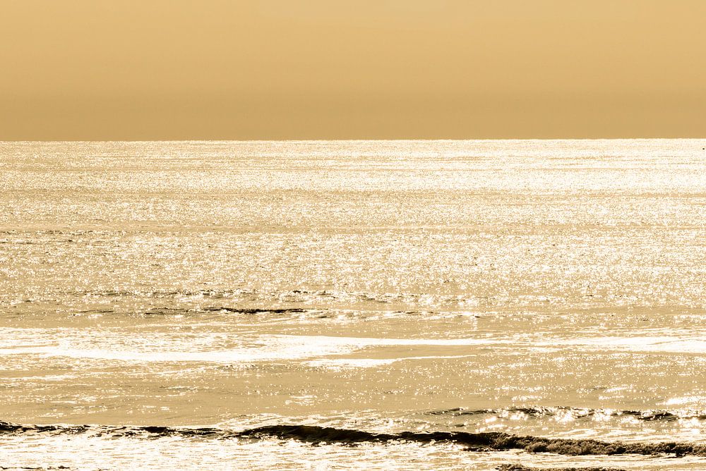 mooi geel licht in de avond creëert een sfeer aan de Nederlandse kust.
