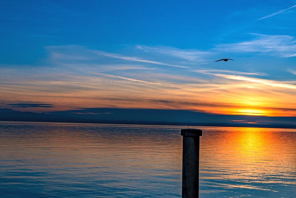 BADEN-WÜRTTEMBERG : SONNENUNTERGANG AM BODENSEE was photographed by Photoart-Naegele 2024 in Friedrichshafen. ( Nikon Z50 )