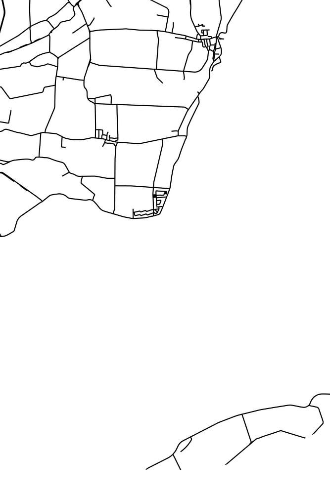 Black and white map, street map or street plan of Baarland. Baarland is located in the municipality of Borsele, province of Zeeland. On the city map all public roads in Baarland are included. Furthermore, the map features the coordinates of the center of Baarland.