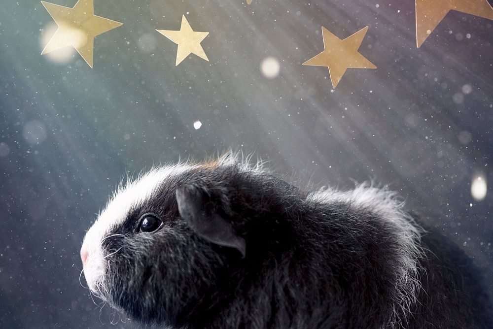A sweet picture of a little guinea pig among the stars. Great for a nursery, a guinea pig fan or someone who likes stars.